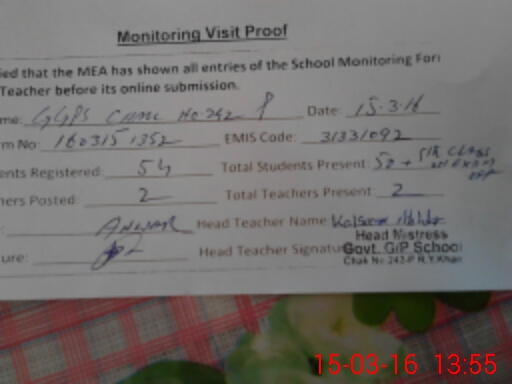 | Certified that this School was Inspected by the Undersigned MEA/DMO Today and the Information Stated Above is as Per Record. | |||||