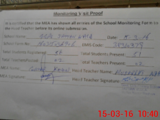 | Certified that this School was Inspected by the Undersigned MEA/DMO Today and the Information Stated Above is as Per Record. | |||||