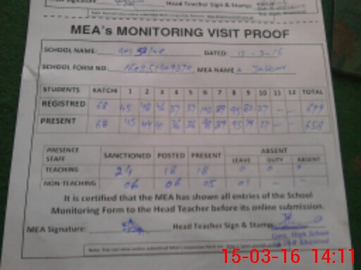 | Certified that this School was Inspected by the Undersigned MEA/DMO Today and the Information Stated Above is as Per Record. | |||||
