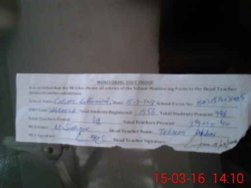 | Attendance Register | Head Teacher | MEA with School | Visit Proof |