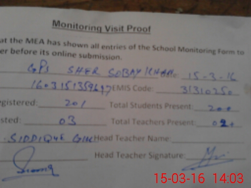 | EMIS Code: 31310250 | Name of School: GPS SHAHER SOBAY KHAN | |||
