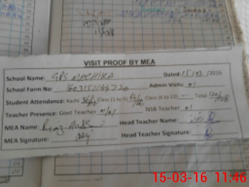 | Attendance Register | Head Teacher | MEA with School | Visit Proof |