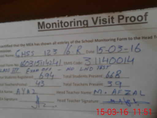 | EMIS Code: 31140014 | Name of School: GHSS CHAK 123/6-R | |||