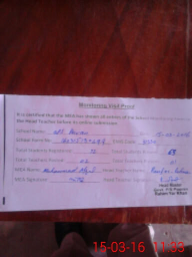 | EMIS Code: 31330278 | Name of School: GPS PORAN | |||