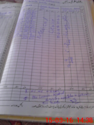 | Remarks (Use Separate Page if Required): Pst sahra Rafique 25 1 2016 to diffrent type on leave till to date last m c 15 2 2016 to 22 2 2016 rest mc not availble in school and leave account register not available also in school | |||||