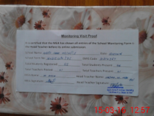 | Attendance Register | Head Teacher | MEA with School | Visit Proof |