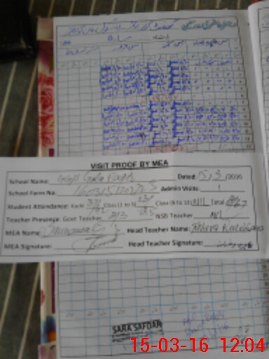 | Attendance Register | Head Teacher | MEA with School | Visit Proof |