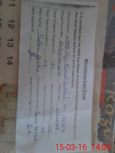 | Certified that this School was Inspected by the Undersigned MEA/DMO Today and the Information Stated Above is as Per Record. | |||||