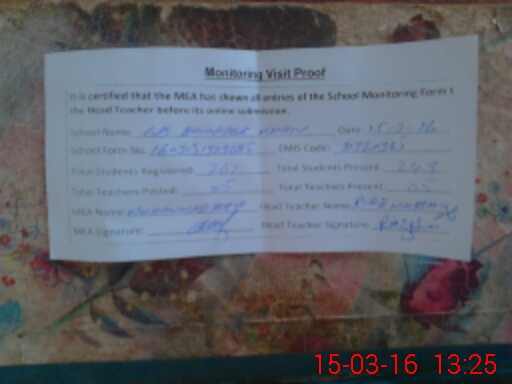 | Certified that this School was Inspected by the Undersigned MEA/DMO Today and the Information Stated Above is as Per Record. | |||||