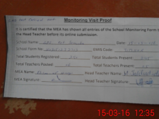 | Attendance Register | Head Teacher | MEA with School | Visit Proof |