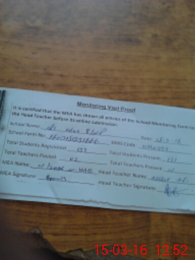 | Attendance Register | Head Teacher | MEA with School | Visit Proof |