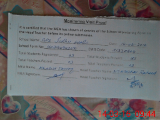 | EMIS Code: 31320404 | Name of School: GPS SIDHU WALI | |||