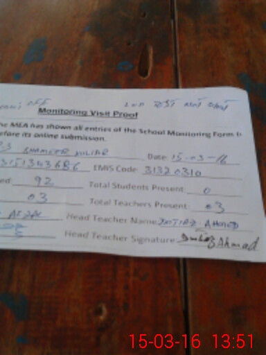 | Attendance Register | Head Teacher | MEA with School | Visit Proof |