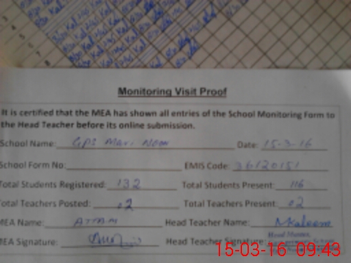 | EMIS Code: 36120151 | Name of School: GPS MARI NOON TAIL FAIZ PUR | |||