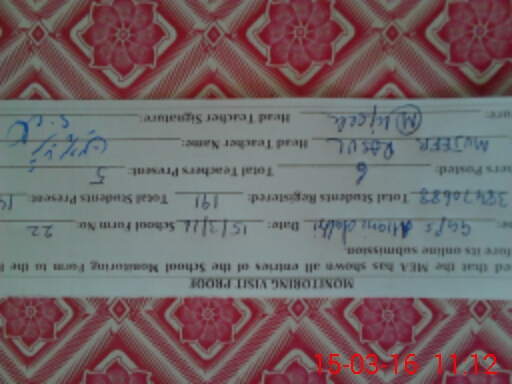 | Certified that this School was Inspected by the Undersigned MEA/DMO Today and the Information Stated Above is as Per Record. | |||||