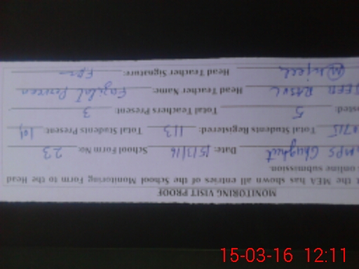 | Attendance Register | Head Teacher | MEA with School | Visit Proof |