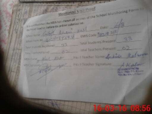 | Attendance Register | Head Teacher | MEA with School | Visit Proof |