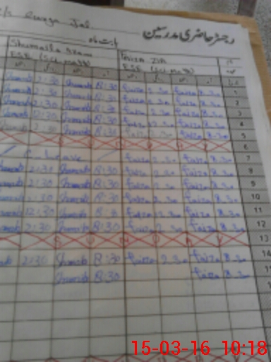 | CNIC | Full Name | Designation | R/C | Absence During Last Calender Month |