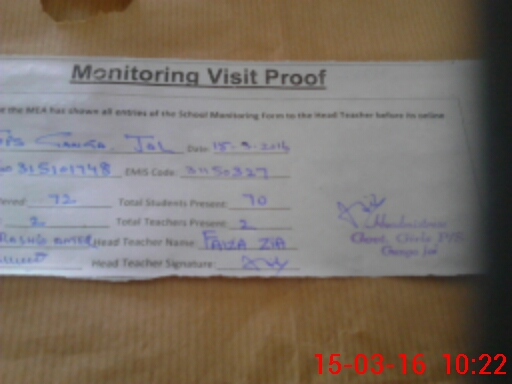 | Attendance Register | Head Teacher | MEA with School | Visit Proof |