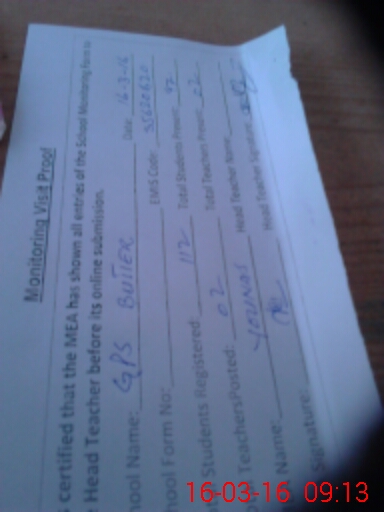 | Attendance Register | Head Teacher | MEA with School | Visit Proof |