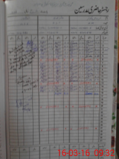 | CNIC | Full Name | Designation | R/C | Absence During Last Calender Month |