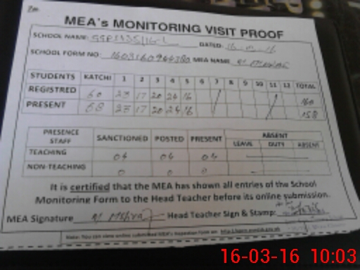 | Certified that this School was Inspected by the Undersigned MEA/DMO Today and the Information Stated Above is as Per Record. | |||||
