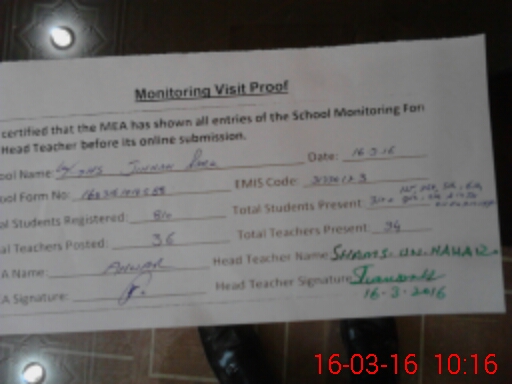 | Attendance Register | Head Teacher | MEA with School | Visit Proof |