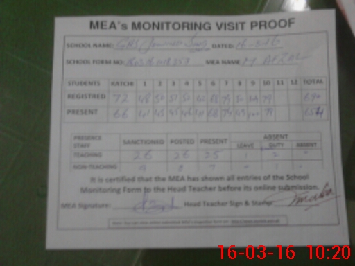 | Certified that this School was Inspected by the Undersigned MEA/DMO Today and the Information Stated Above is as Per Record. | |||||