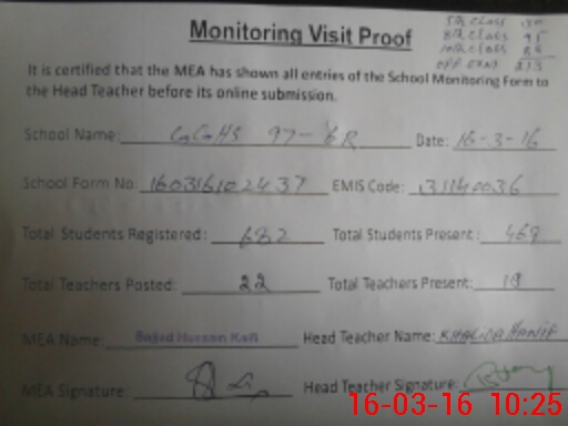 | Certified that this School was Inspected by the Undersigned MEA/DMO Today and the Information Stated Above is as Per Record. | |||||