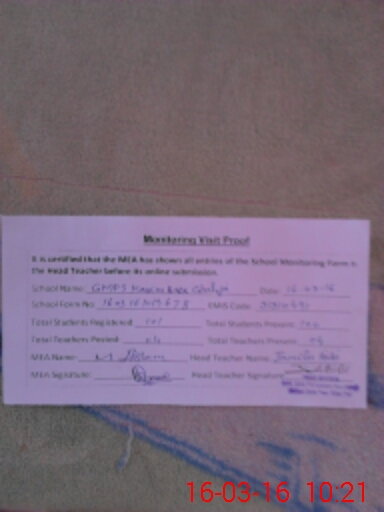 | Attendance Register | Head Teacher | MEA with School | Visit Proof |