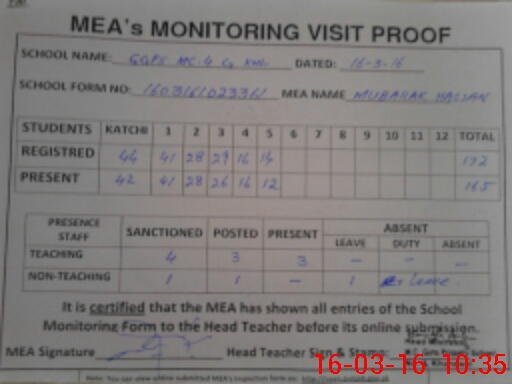 | Certified that this School was Inspected by the Undersigned MEA/DMO Today and the Information Stated Above is as Per Record. | |||||