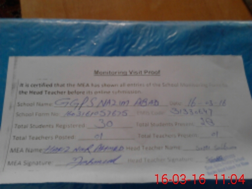 | EMIS Code: 31330647 | Name of School: GGPS NAZIM ABAD | |||