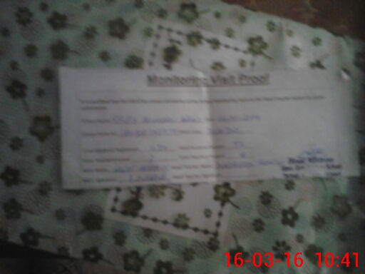 | Monitoring Date: 16-03-2016 | Start Time: 16-03-2016 09:40 AM | End Time: 16-03-2016 10:43 AM | Name of MEA: Al**** Hu**** BN**** | |
