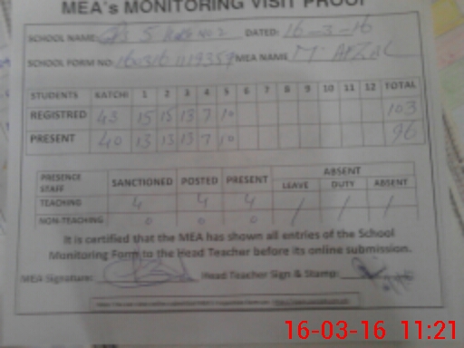 | EMIS Code: 36410167 | Name of School: GPS 5-KASSI NO.2 KABIRWALA | |||