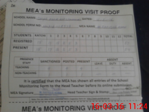 | Attendance Register | Head Teacher | MEA with School | Visit Proof |