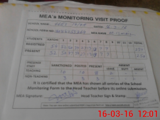 | Attendance Register | Head Teacher | MEA with School | Visit Proof |