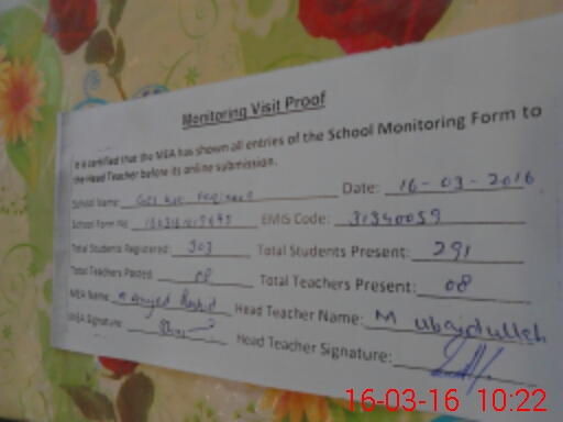 | Attendance Register | Head Teacher | MEA with School | Visit Proof |