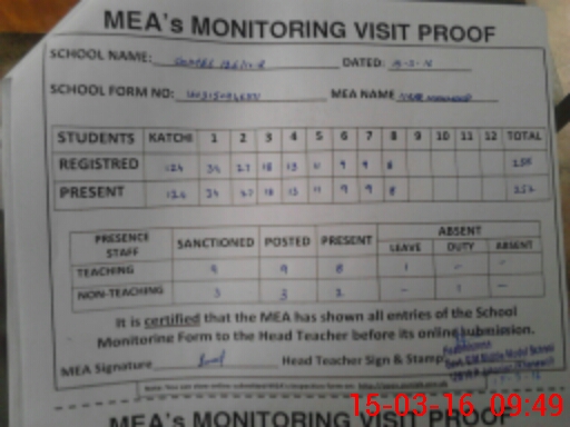 | Certified that this School was Inspected by the Undersigned MEA/DMO Today and the Information Stated Above is as Per Record. | |||||