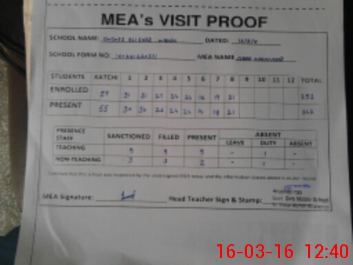 | Attendance Register | Head Teacher | MEA with School | Visit Proof |