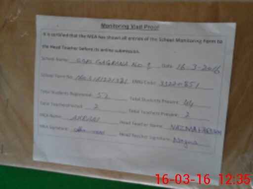 | Attendance Register | Head Teacher | MEA with School | Visit Proof |
