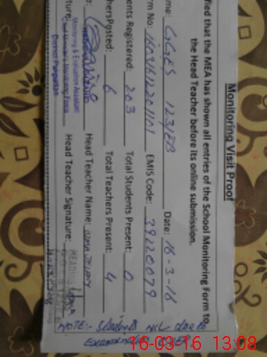 | Attendance Register | Head Teacher | MEA with School | Visit Proof |