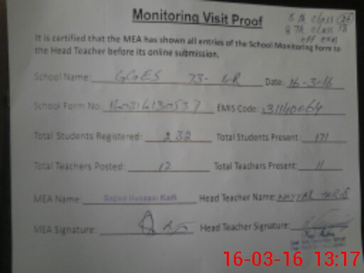 | Certified that this School was Inspected by the Undersigned MEA/DMO Today and the Information Stated Above is as Per Record. | |||||
