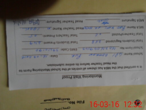 | Certified that this School was Inspected by the Undersigned MEA/DMO Today and the Information Stated Above is as Per Record. | |||||