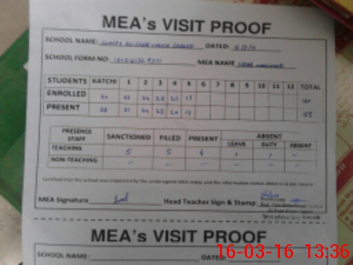 | Attendance Register | Head Teacher | MEA with School | Visit Proof |