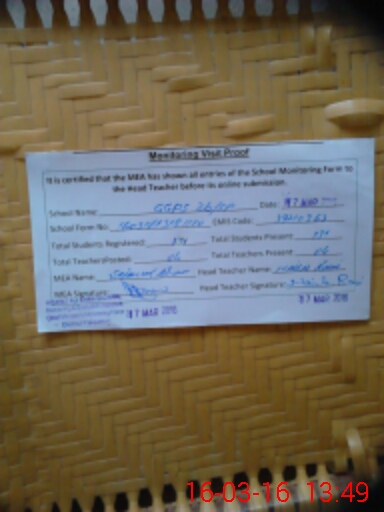 | EMIS Code: 39210363 | Name of School: GGPS 26/SP | |||
