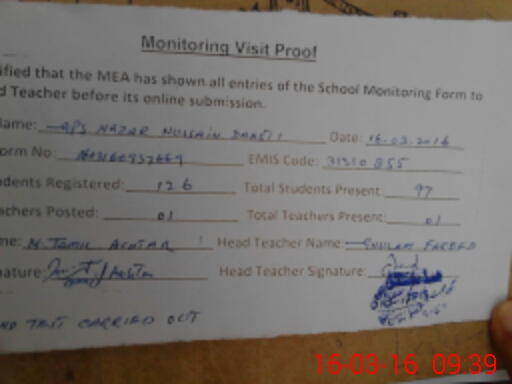 | EMIS Code: 31310855 | Name of School: GPS NAZAR HUSSAIN DASHTI (After Noon) | |||