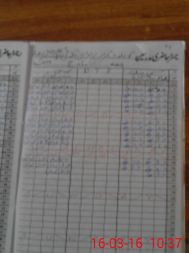 | CNIC | Full Name | Designation | R/C | Absence During Last Calender Month |