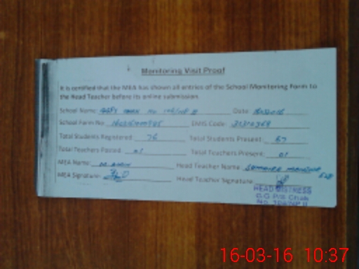 | Attendance Register | Head Teacher | MEA with School | Visit Proof |