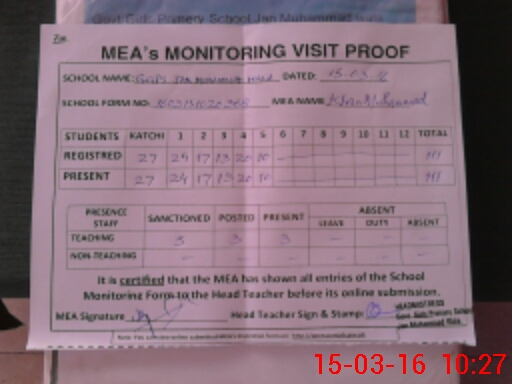 | EMIS Code: 36410467 | Name of School: GMPS JAN MUHAMMAD WALA ABDUL HAKIM | |||