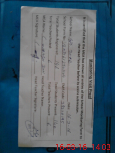 | Certified that this School was Inspected by the Undersigned MEA/DMO Today and the Information Stated Above is as Per Record. | |||||